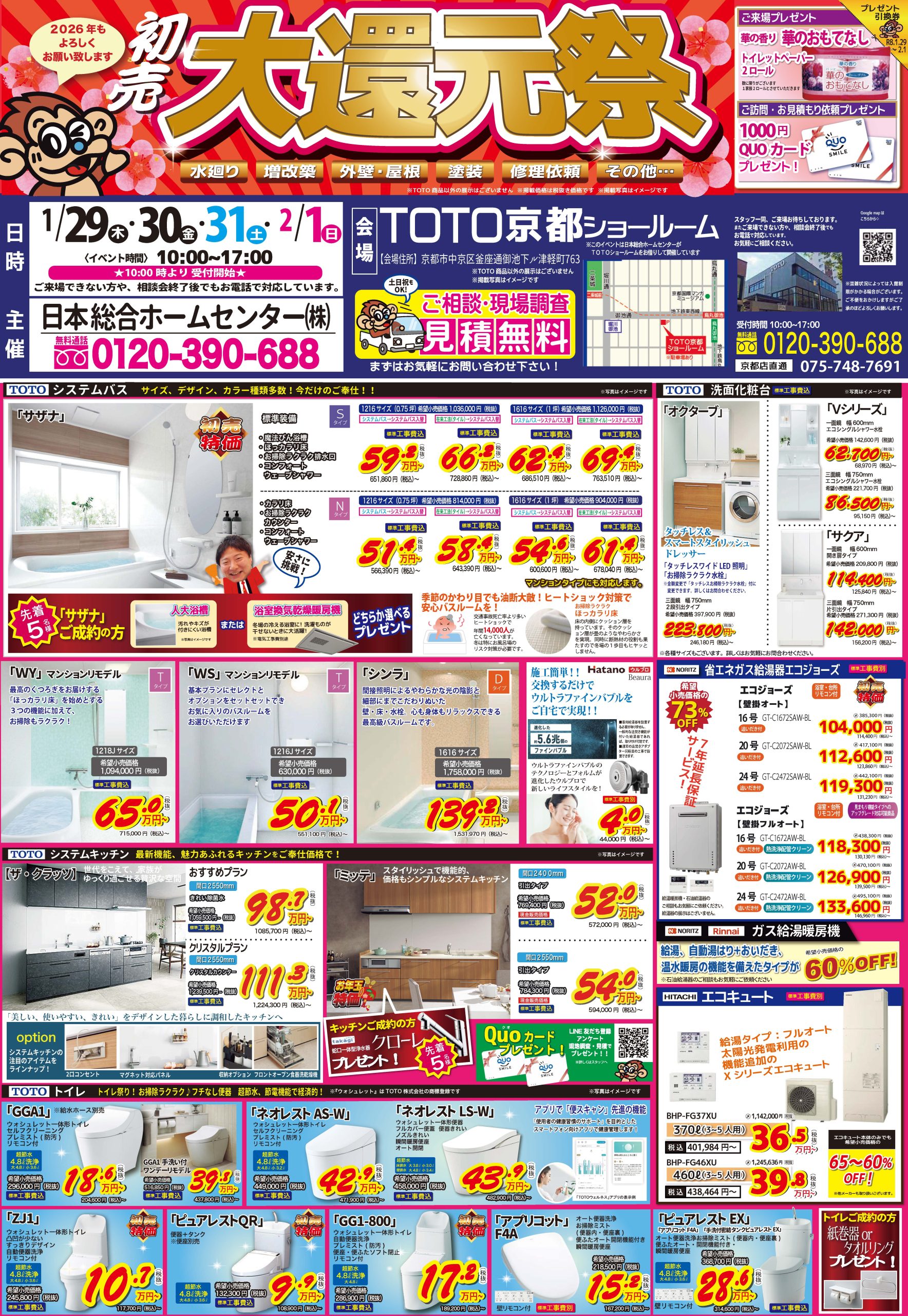 【1/29~2/1】TOTO京都ショールーム相談会