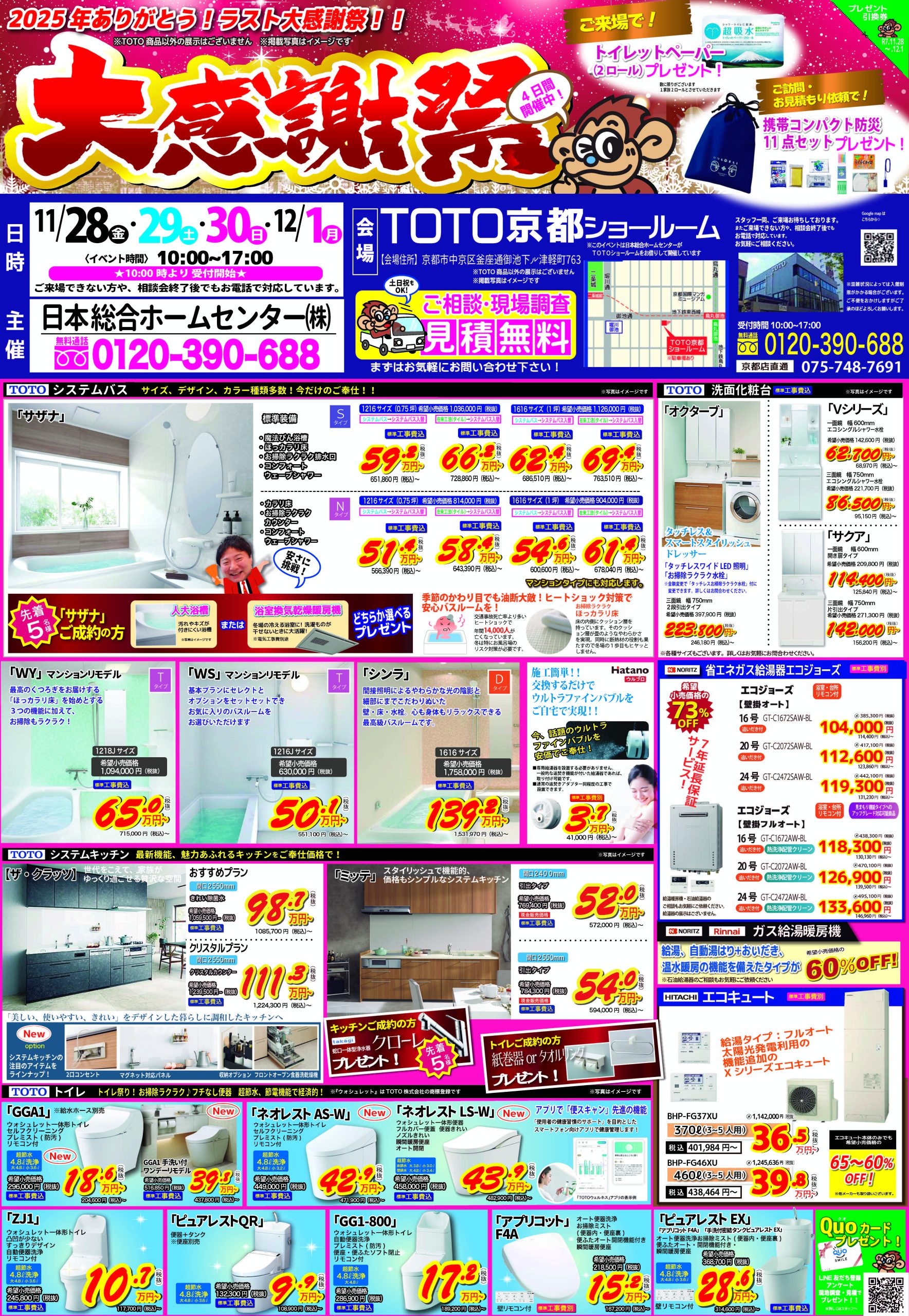 HOME > イベント情報 > 【11/28~12/1】TOTO京都ショールーム相談会